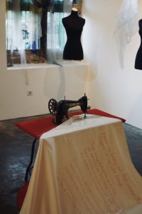 Dengan menyelami karya-karya Ria, menjadi sulit bagi saya untuk setuju sepenuhnya dengan pernyataan Karl Lagerfeld: “Art is art. Fashion is fashion”. Sebab melalui koleksinya, Ria sudah menggugat batas antara fashion dan seni. Koleksinya merupakan busana siap pakai atau ready to wear yang dapat digunakan sehari-hari; namun proses dan konsep pengkaryaannya menjadikan busana lebih dari sekedar objek. Biasanya, saat menonton peragaan busana, mata saya akan tertuju pada pakaian dan keindahannya, tanpa merasa perlu menghadirkan refleksi pribadi atau melibatkan diri dalam proses pemaknaannya. Pada pameran ini karya – karya Ria seakan-akan menyatu dengan tubuh pemakainya, dan ketika karya itu dialihkan ke ruang pamer, mereka membiarkan saya (dan tentu penikmat lainnya) untuk asyik mengaitkan karya-karya itu dengan ingatan dan asosiasi kami sendiri. Bukankah itu karya yang hidup dengan menghadirkan pemaknaan berulang?